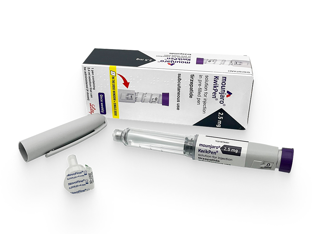 Mounjaro is an injectable weight loss medication that contains the active ingredient tirzepatide. Tirzepatide works by activating two receptors (GLP-1 and GIP) to increase the level of hormones in the body, helping you to feel fuller for longer after a meal.